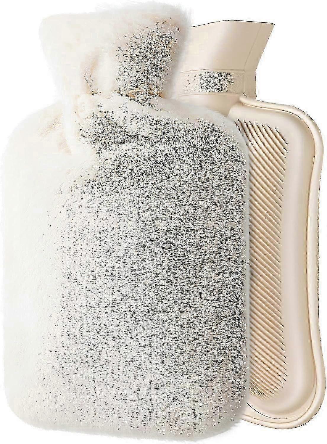 2L Hot Water Bottle with Plush Cover - Natural Rubber for Warmth & Comfort