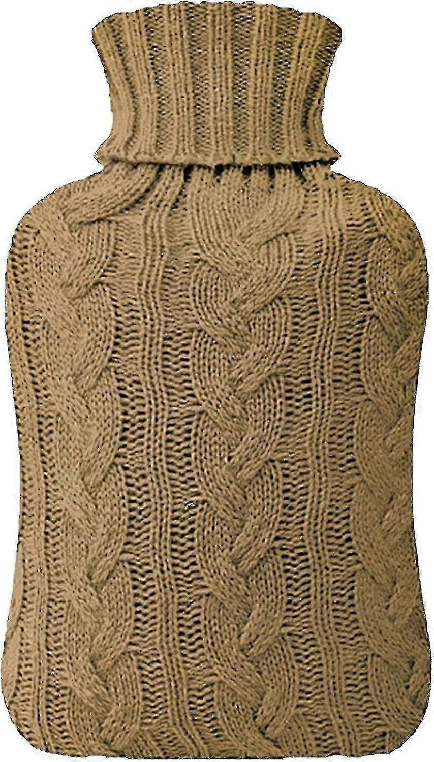 Hot Water Bottle with Knitted Cover, 2L Hot & Cold Compress Bag - Khaki