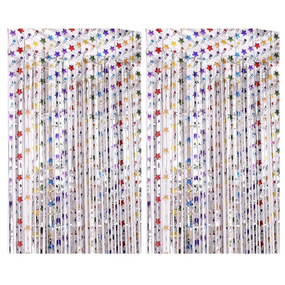 2m Silver Metal Foil Curtain Party Birthday Background Decoration Colorful Pentagram