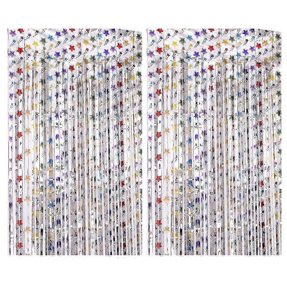 2m Silver Metal Foil Curtain Party Birthday Background Decoration Colorful Pentagram 2025