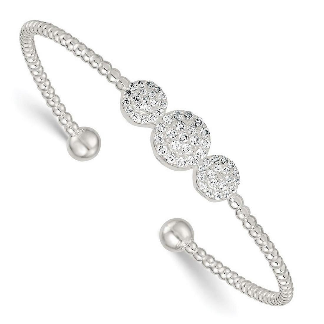 2mm Sterling Silver Polished and Beaded Pave Cubic Zirconia Triple Circle Cuff Bangle Bracelet - 4.7 Grams In Sterling Silver - - Charm/Element Width: 8 mm - Charm/Element Thickness: 3.6 mm - Width of Item: 8 mm - Charm/Element Length: 20.4 mm - Clasp /Connector: Slip On (No Clasp) - Finish: Polished - Feature: Flexible - - [ Potential Enhancement Methods: cubic zirconia ] - Synthetic. Some are covered with a product that makes the stone more durable. - [ Care and Handling: cubic zirconia ] - Clean with warm soapy water and a soft cloth. -