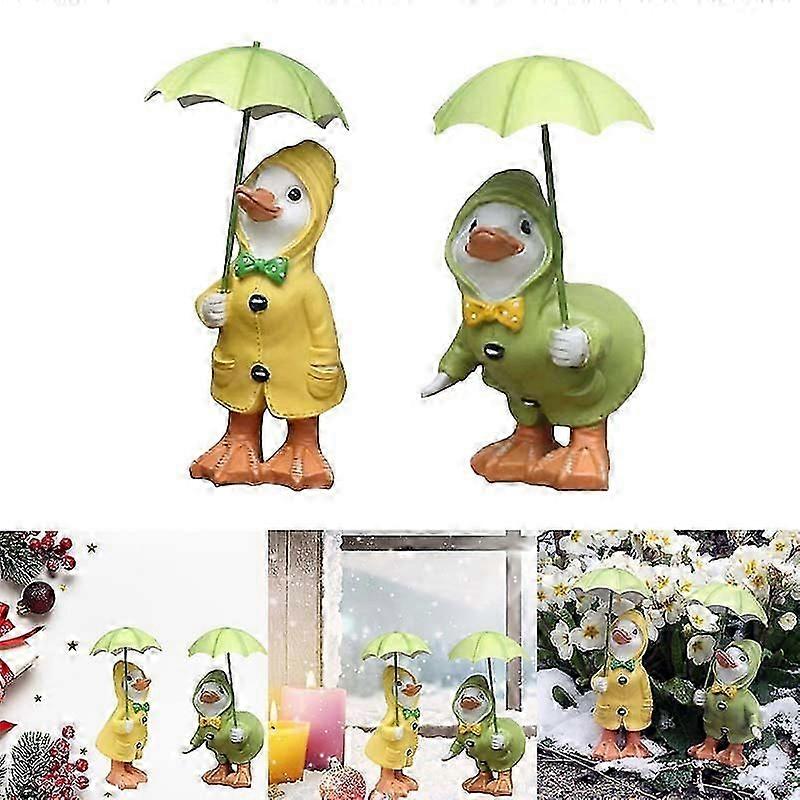 2PACK Garden Ducks Kit with Detachable Umbrella Garden Ornaments Outdoor Novelty Standing Sculpture Kit cs