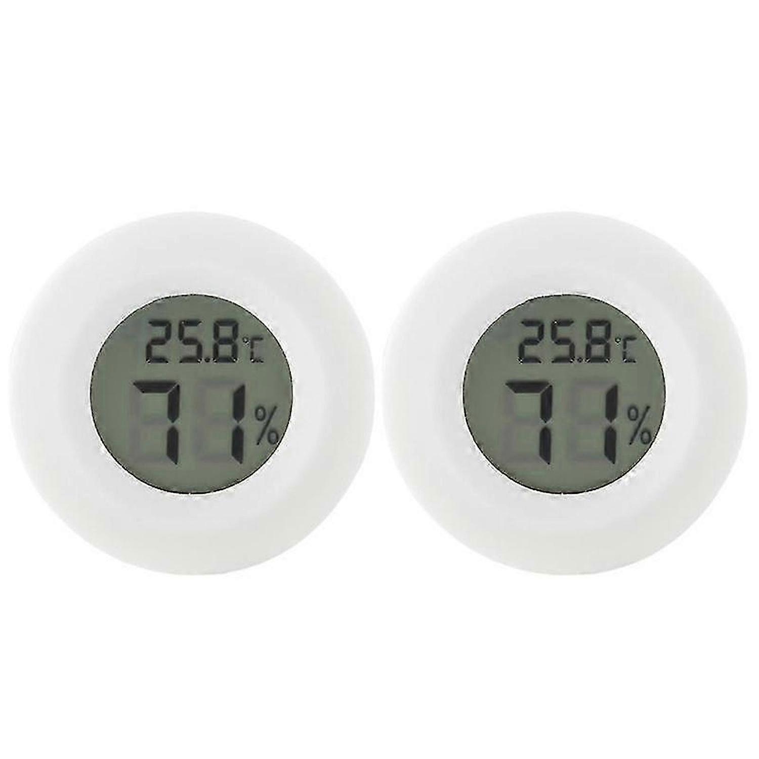 2pc Round Shaped Digital Thermometer Hygrometer Humidity Meter Temperature Display For Indoor Bedroom Home Use Without Battery (white)