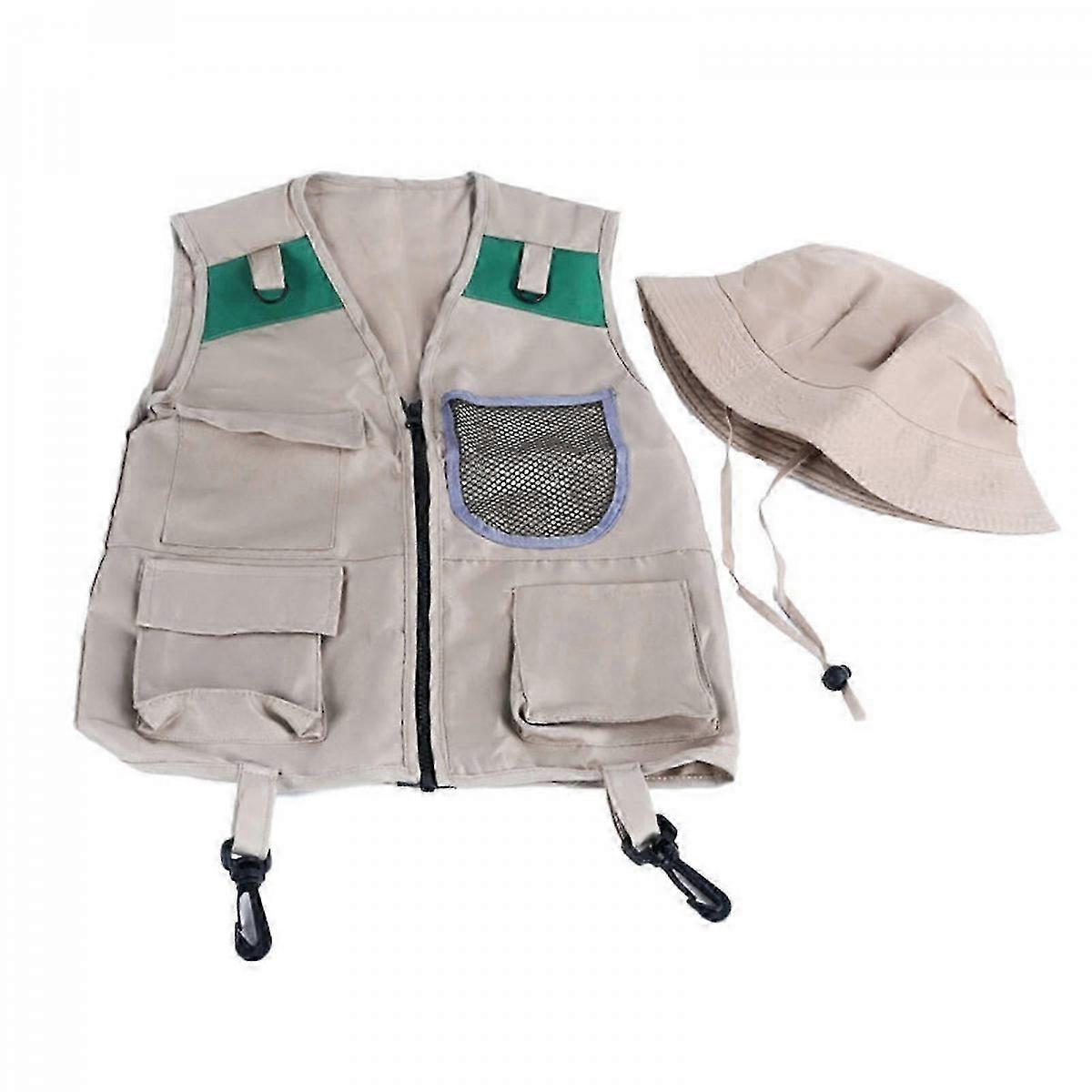 2pc Kids Outdoor Explorer Kit,Kids Adventure Kit,Explorer Costume,Vest and Hat Set Halloween Cosplay Costume Accessories