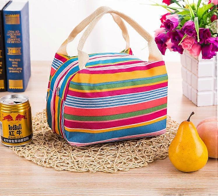 2pc Striped portable insulation bag Fashion insulation cold and waterproof portable lunch bag outdoor fresh-keeping bag (D-4D)