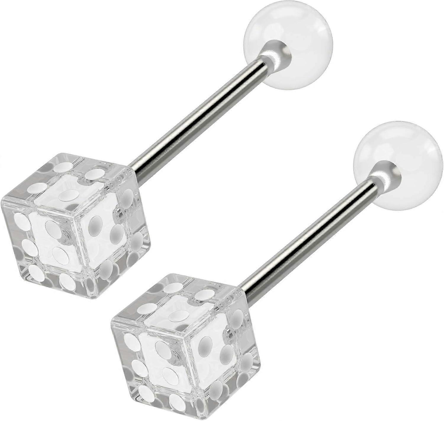 2pc Dice Tongue Ring Clear 14g Piercing Barbell For Women Acrylic Plastic 14