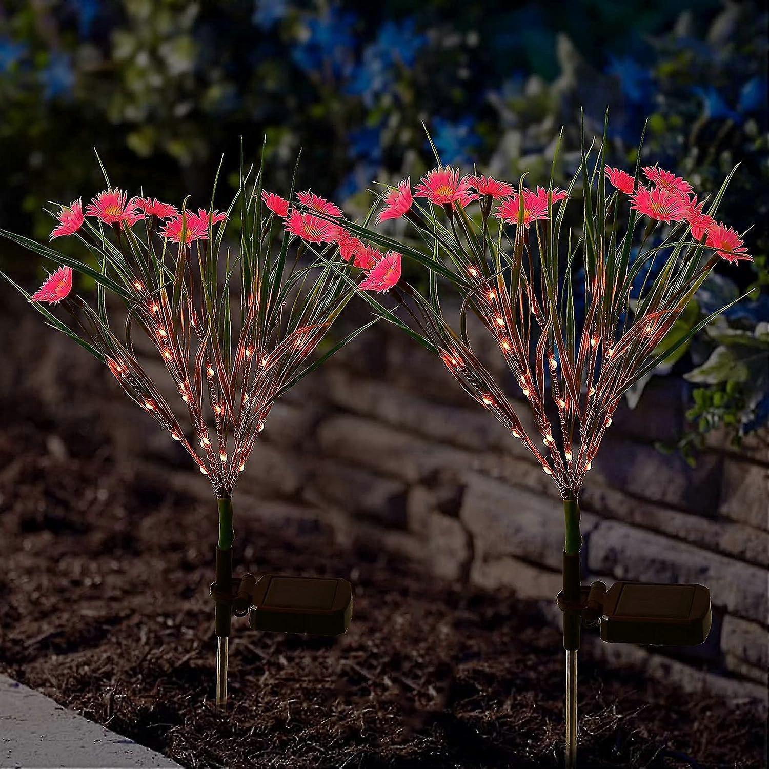 2pc Artificial Pink Little Daisy Light Outdoor,outdoor Solar Garden Stake Lights,multi-color Led Waterproof Landscape Light For Patio Yard Decoration"