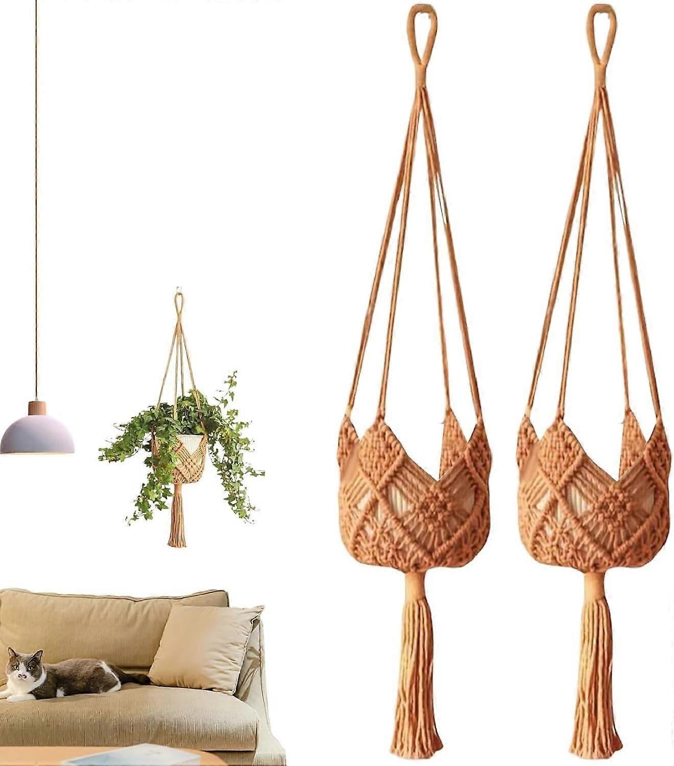 2Pc Plant Hanger Trendy Crochet Hanging Planters Durable Indoor Flower Pot Home Decor For Living R