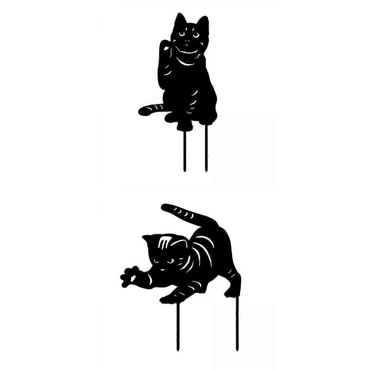 2pcs Acrylic Cat Silhouette Animal Stakes Garden Statues for Lawn Yard
