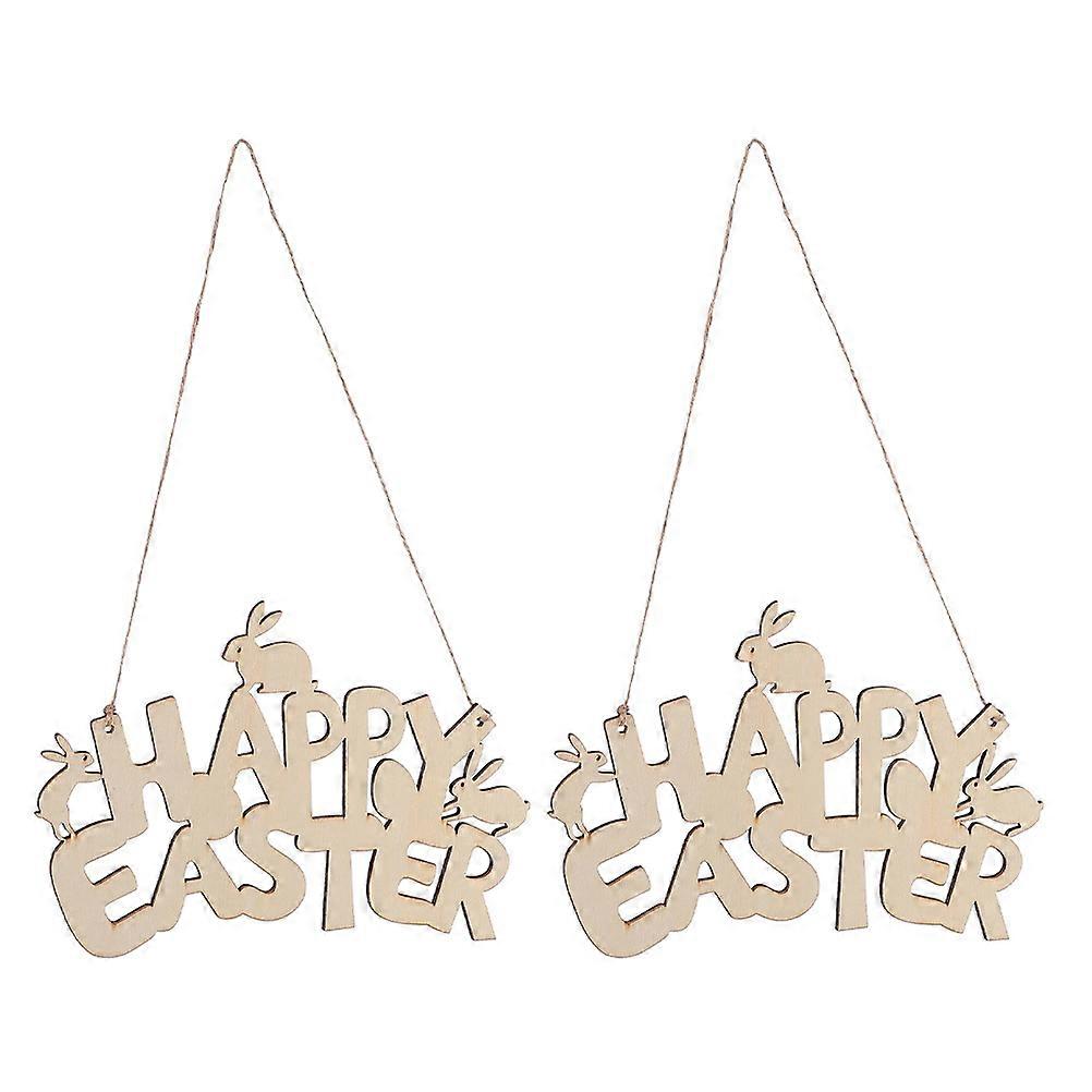 2pcs Easter Hanging Decoration Wooden Hollow Ornament for Front Door