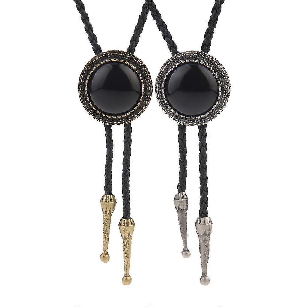 2pcs Vintage Western Cowboy Men Bolo Tie Handmade Leather Pendant Necklace