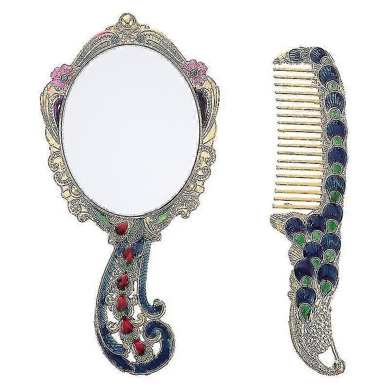 DescriptionVintage style mirror comb set, includes one hand mirror and one comb. Superb craftsmanship, a great match to your cosmetics set. Durable for long time use, one set for hair dressing and beauty. Extremely well made and light enough to carry around in your purse without weighing it down. Perfect for checking the back of your hair. A great match to your cosmetics set.Features- Color: Golden.- Material: Metal, glass.- Size: About 13.00X7.00X0.20 cm/5.11X2.75X0.08 inch.- Makeup mirror and comb set, handheld and portable dresser accessories, cosmetic decor for kids birthday.- Necessary item for your beautiful face makeup in lady's bag, with the sleek outlook, durable body, and good hand feeling.- It will be a great choice for women and girls to create charming appearance. Suitable to be put into your pocket, purse, handbag and more.- Compact size, for travel, school, gym, pool, desk drawer or purse.- Comfortable combing experience without hurting your scalp, durable and lightweight to use, easy to hold in your hands.