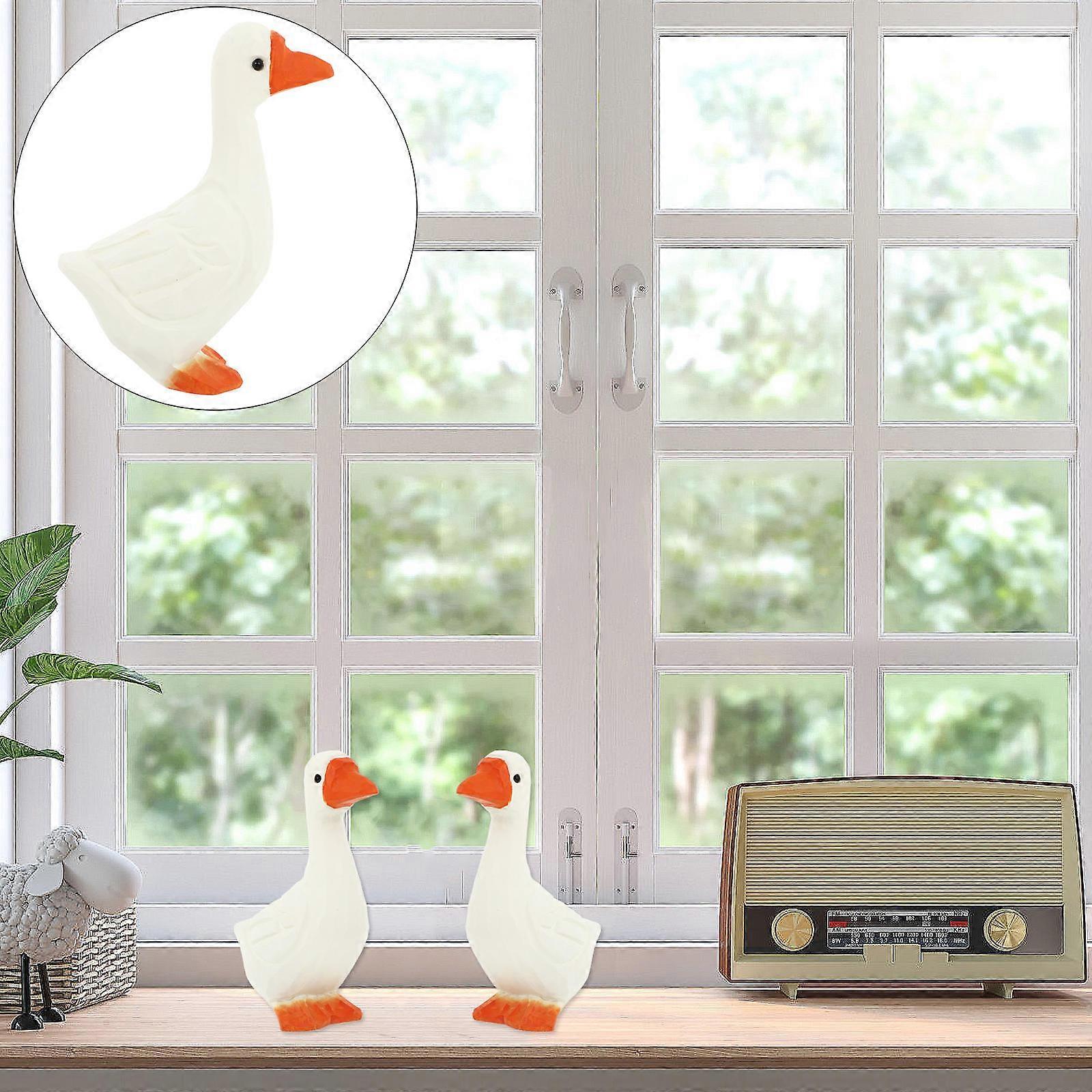 2pcs Wood Craft White Goose Home Ornament Creative Goose Statue Figurine