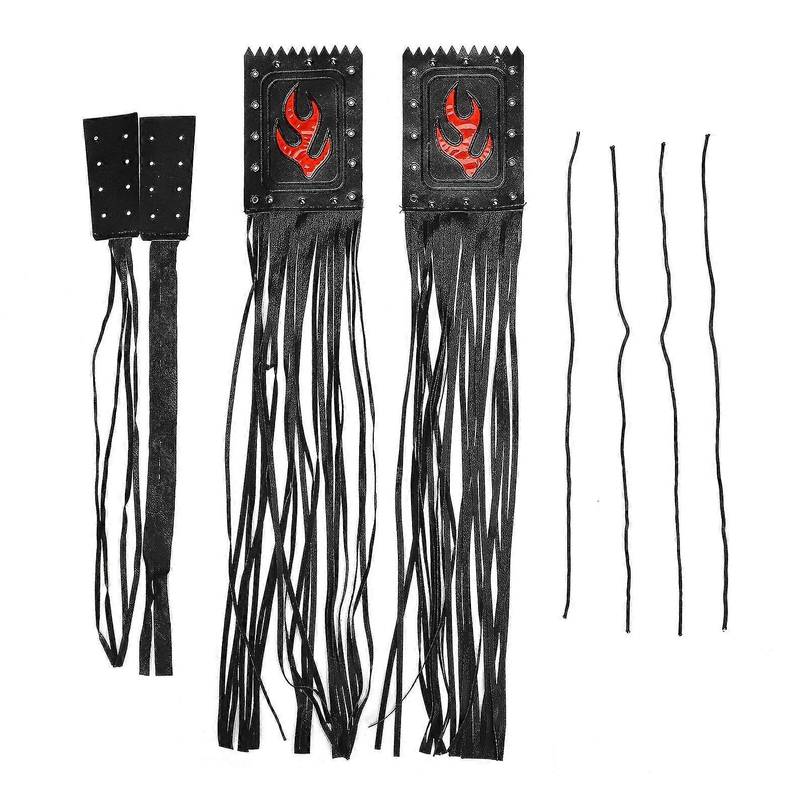 2pcs Motorcycle Tassel Fringe Handlebars Hand Grip Lever Covers Black Pu Leather Mounting Straps