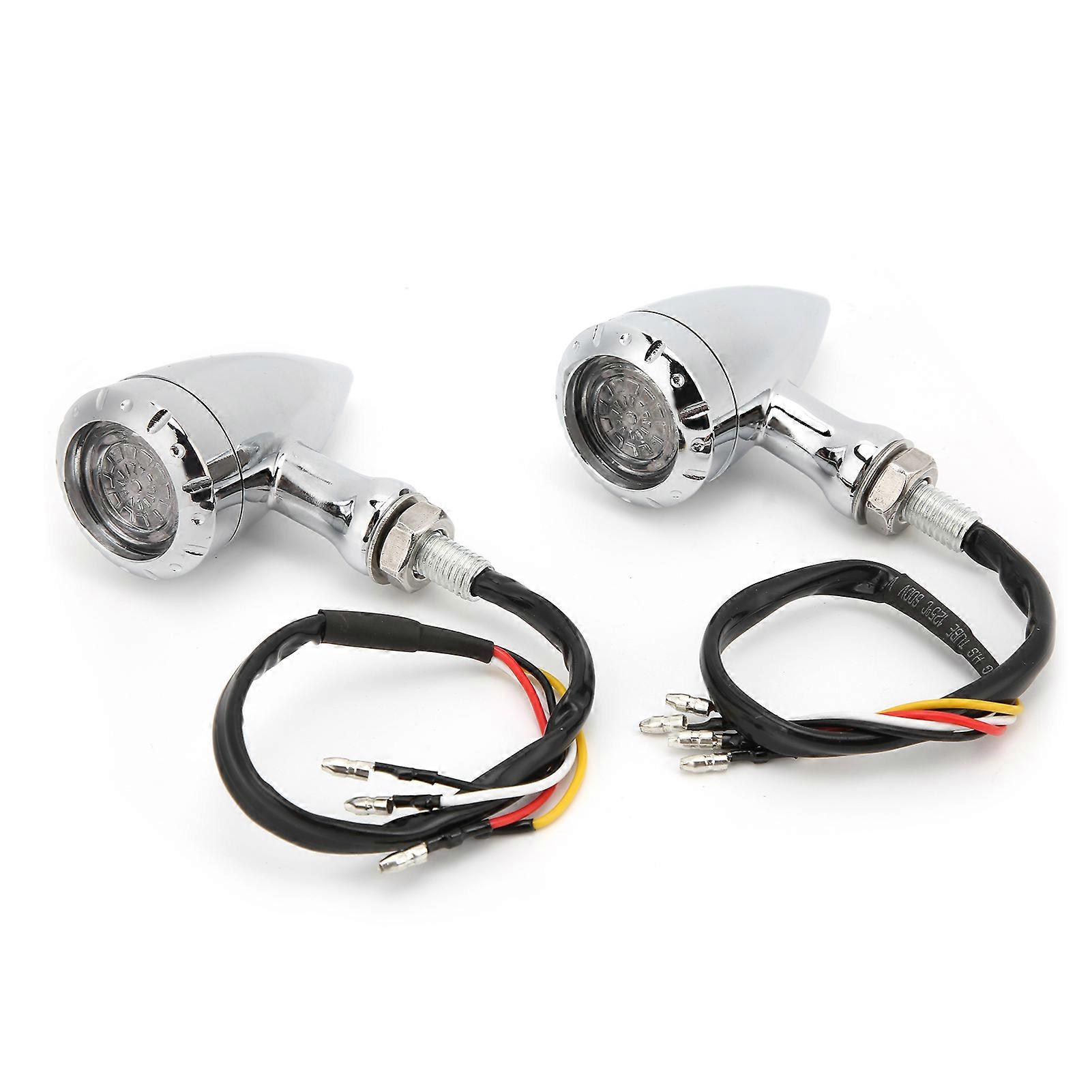 2pcs Motorcycle LED Turn Signal Lamp Retro Yellow Red Light Chrome Plated Shell Universal