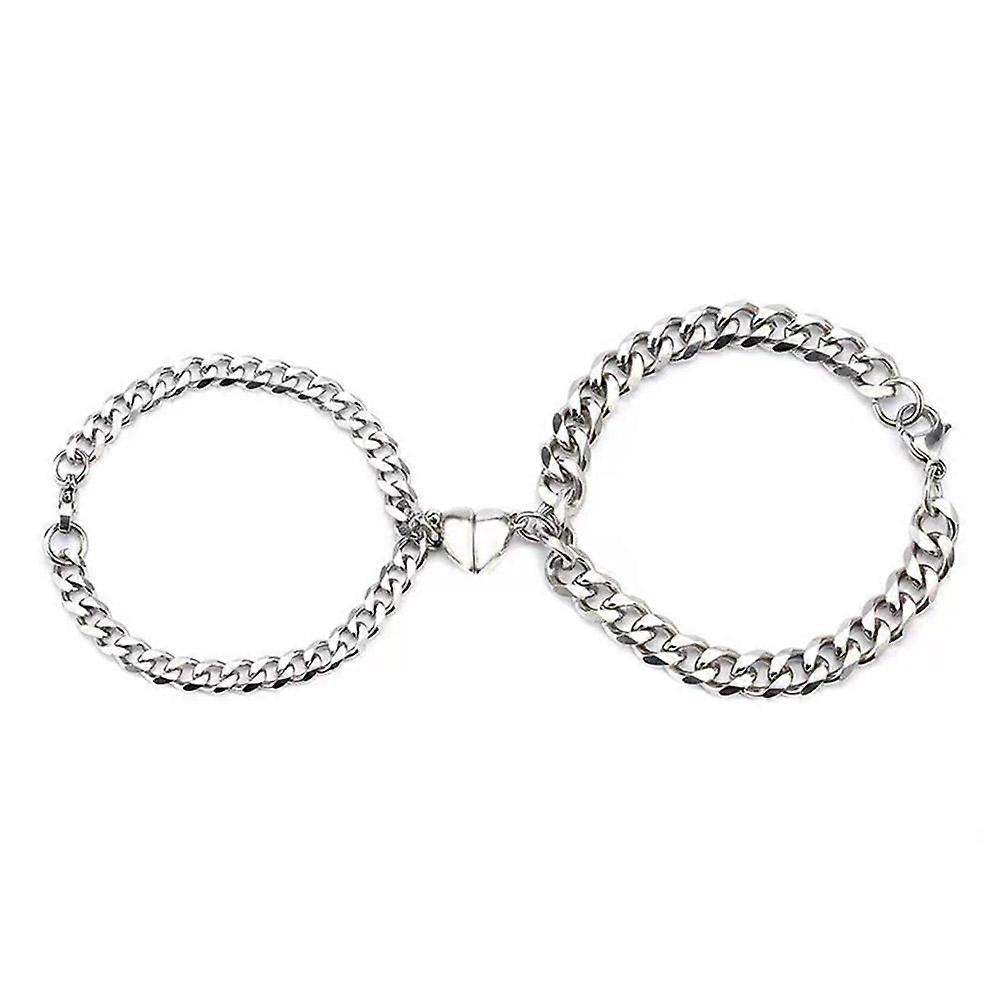 2pcs Couple Matching Heart Charm Magnetic Bracelet Promise J5D8