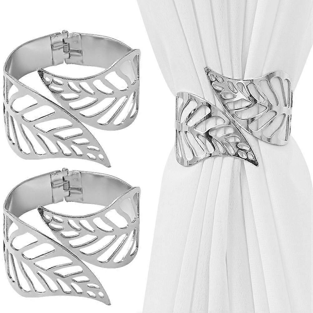 2pcs Curtain Buckles Punch Free Curtain Clamps Alloy Hollow Leaf Curtain Buckles