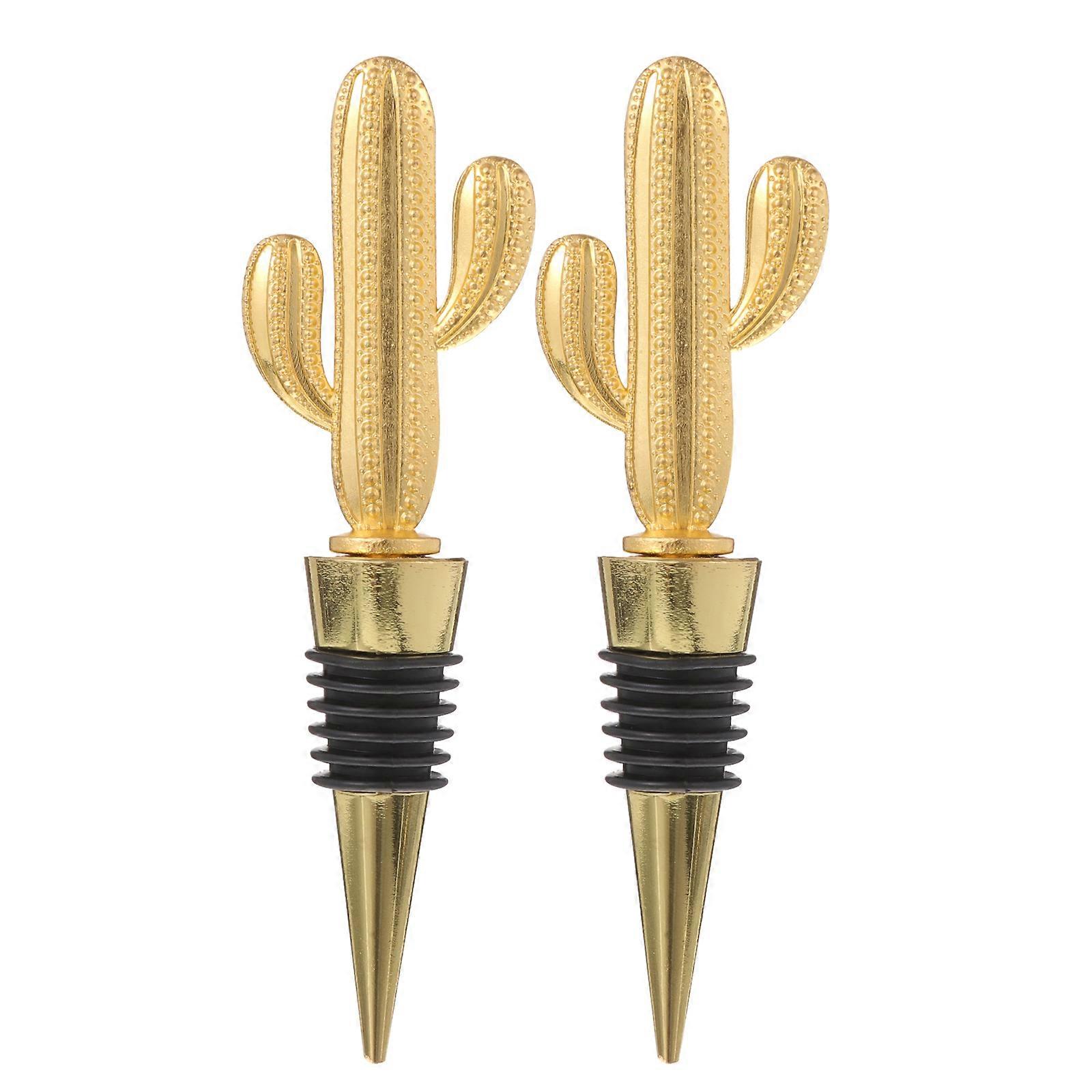 2pcs Creative Cactus Wine Stoppers Champagne Stoppers for Party Wedding (Golden)