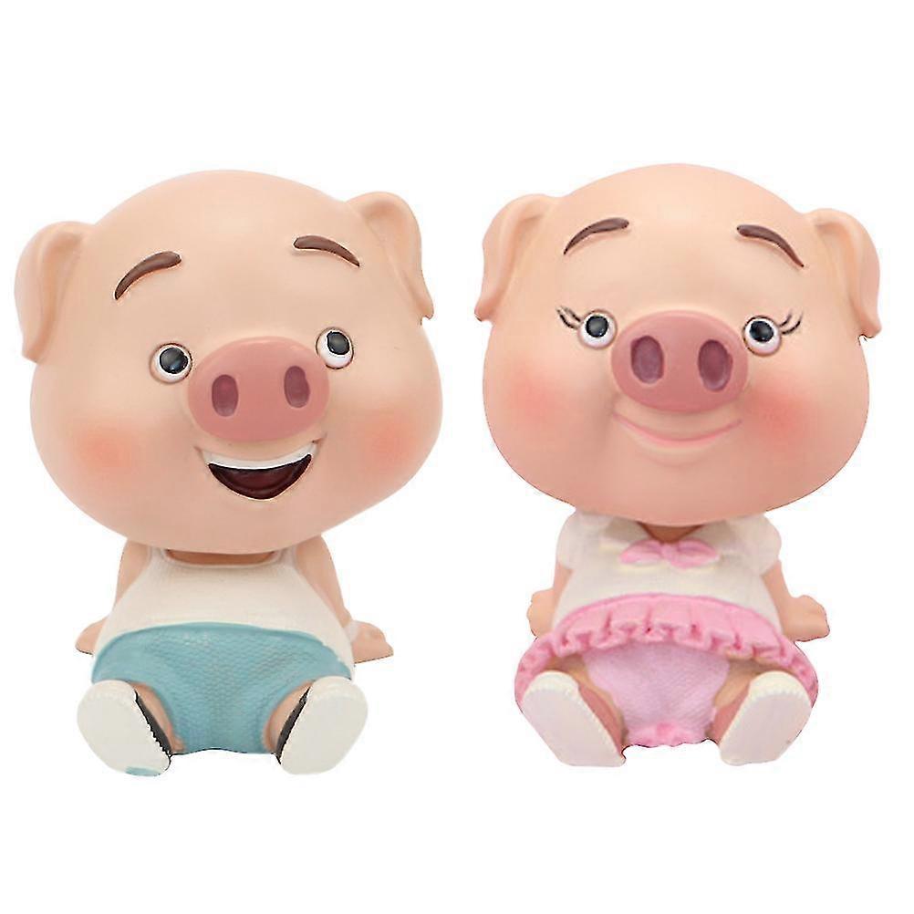 2pcs Creative Bobblehead Pig Ornament Doll Supplies Car Decor (pink,sky-blue)