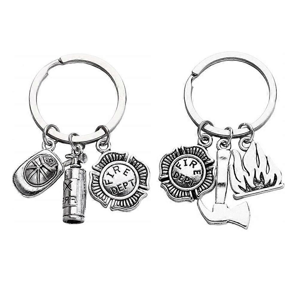 2PCS Creative Fireman Keychain Gift Delicate Fire Keyring Pendant Stainless Steel Key Chain Pendant Novel Firemen Theme Key Rings for Friends Families