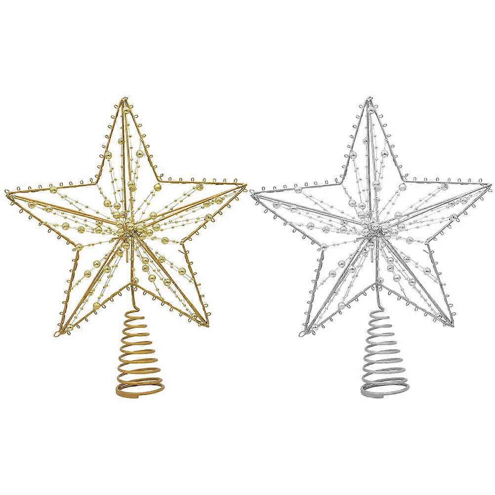 2pcs Christmas Star Tree Topper Metal Hollow Pentagram Xmas Tree Decorations