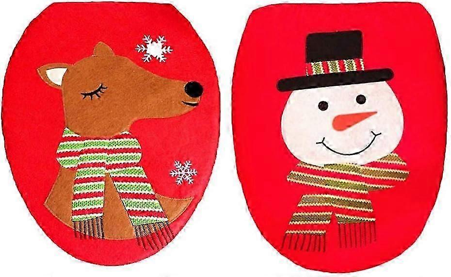 2pcs Christmas Toilet Seat Cover, Snowman and Reindeer Toilet Lid Mats Xmas Decorative Supplies