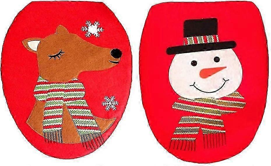 2pcs Christmas Toilet Seat Cover, Snowman And Reindeer Toilet Lid Mats Xmas Decorative Supplies