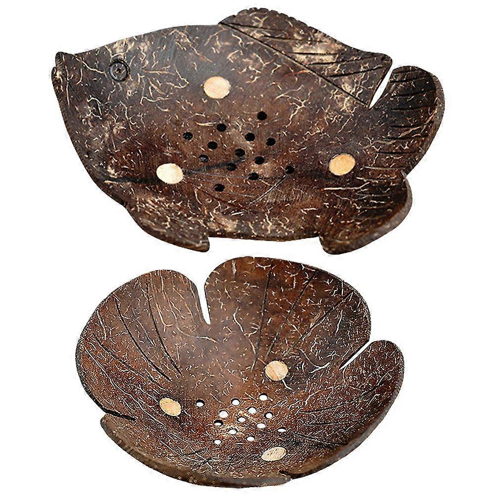 2pcs Coconut Shell Soap Dish Pet Feeder Manual Drain Soap Dish Bathroom Soap Dish