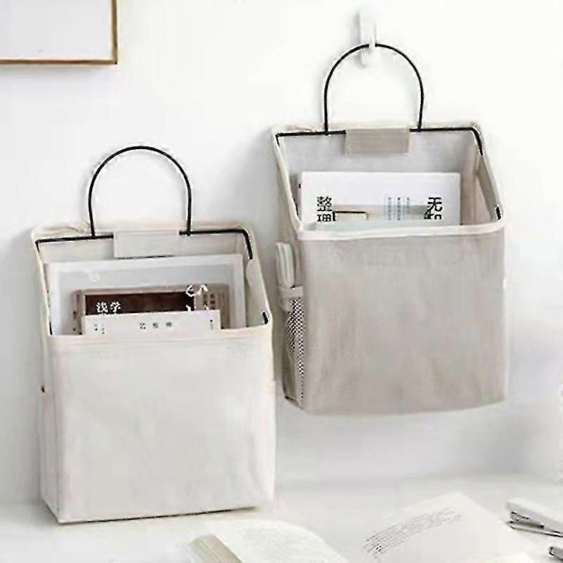 2pcs Cotton Linen Wallmounted Storage Bag Wall Hanging Organizer Book Magazine Holder