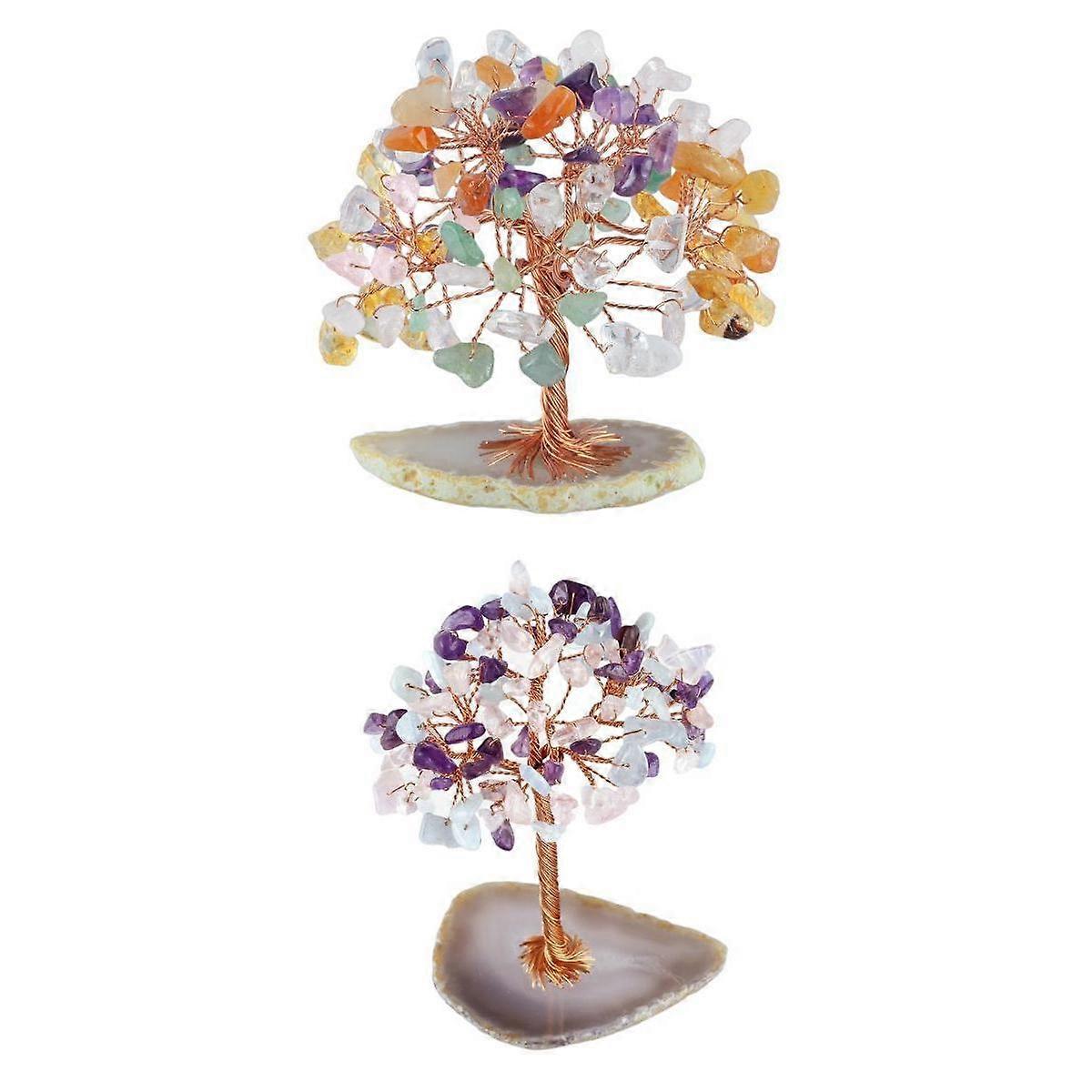 2pcs Gemstone Money Tree Figurine Bonsai Style Desk Decor Home Tabletop Gift
