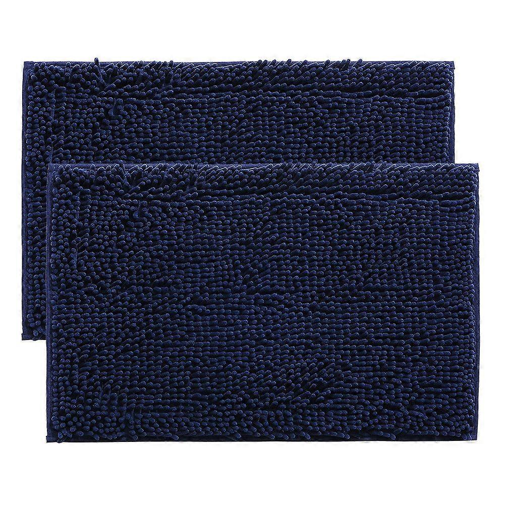 2pcs Chenille Anti-slip Water Absorbent Non-slip Mat Bathroom Living Room (Dark Blue)