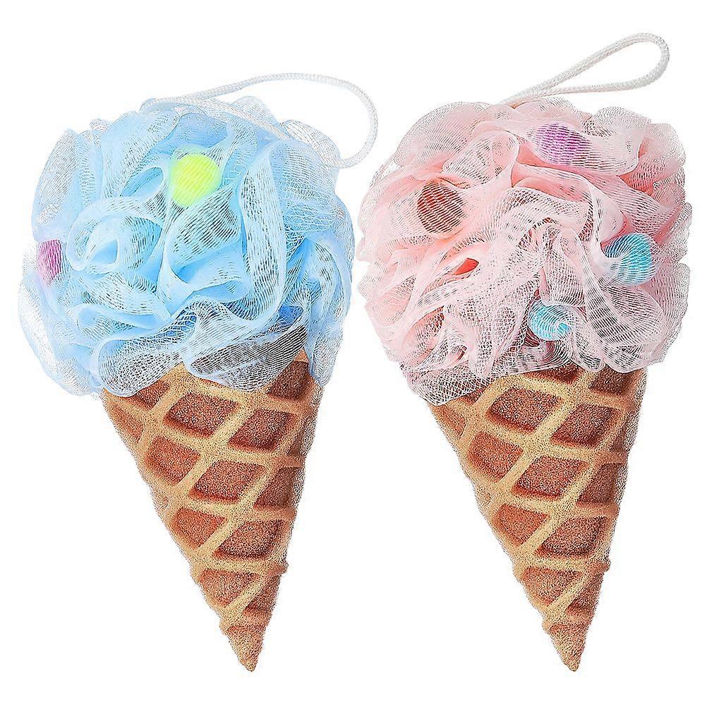 2pcs Shower Loofah Body Scrubber Cute Ice Cream Shaped Loofah Body Wash Scrubber