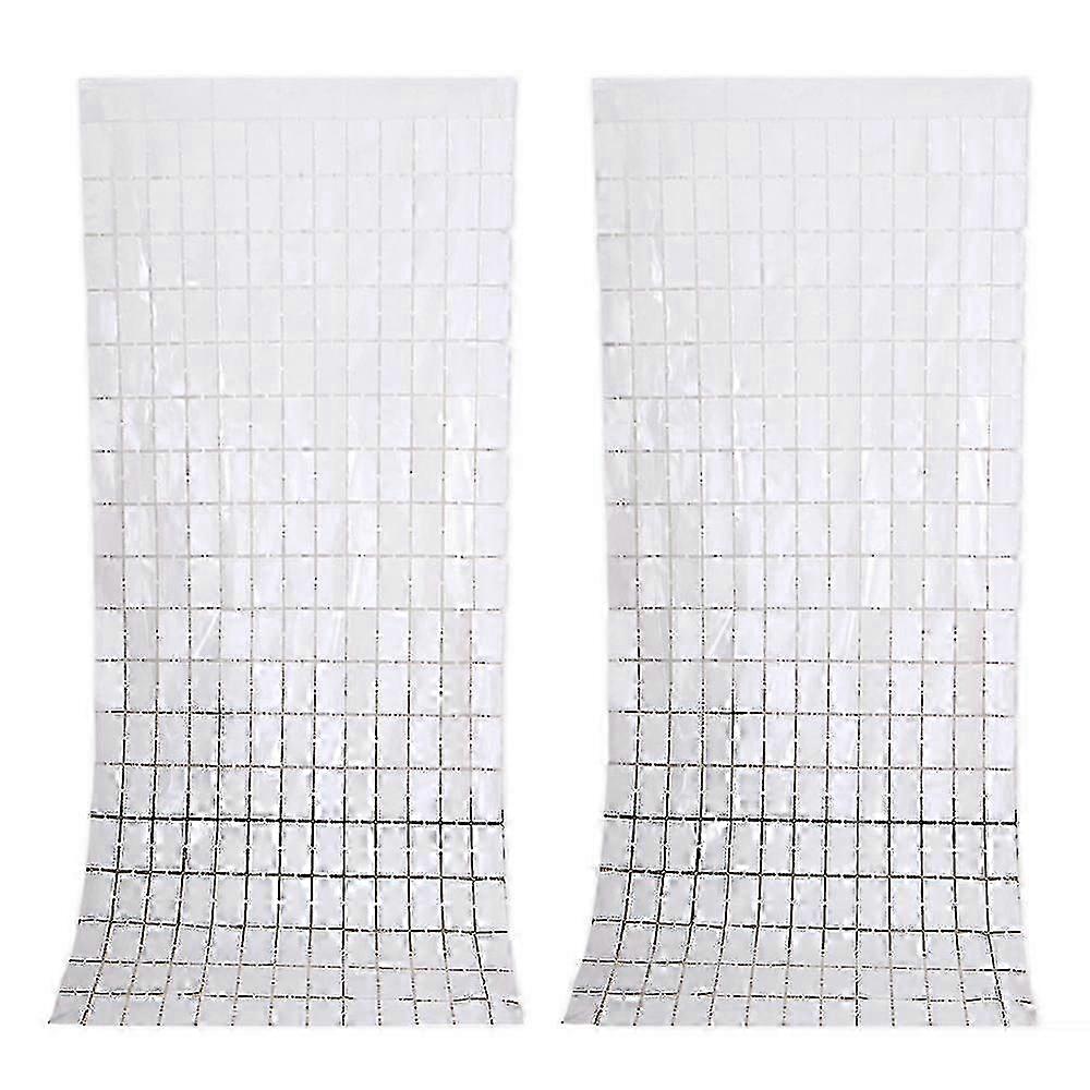 2pcs Square Foil Fringe Backdrop Curtain Tinsel Curtain Backdrop For Birthday, Wedding, Party Decor