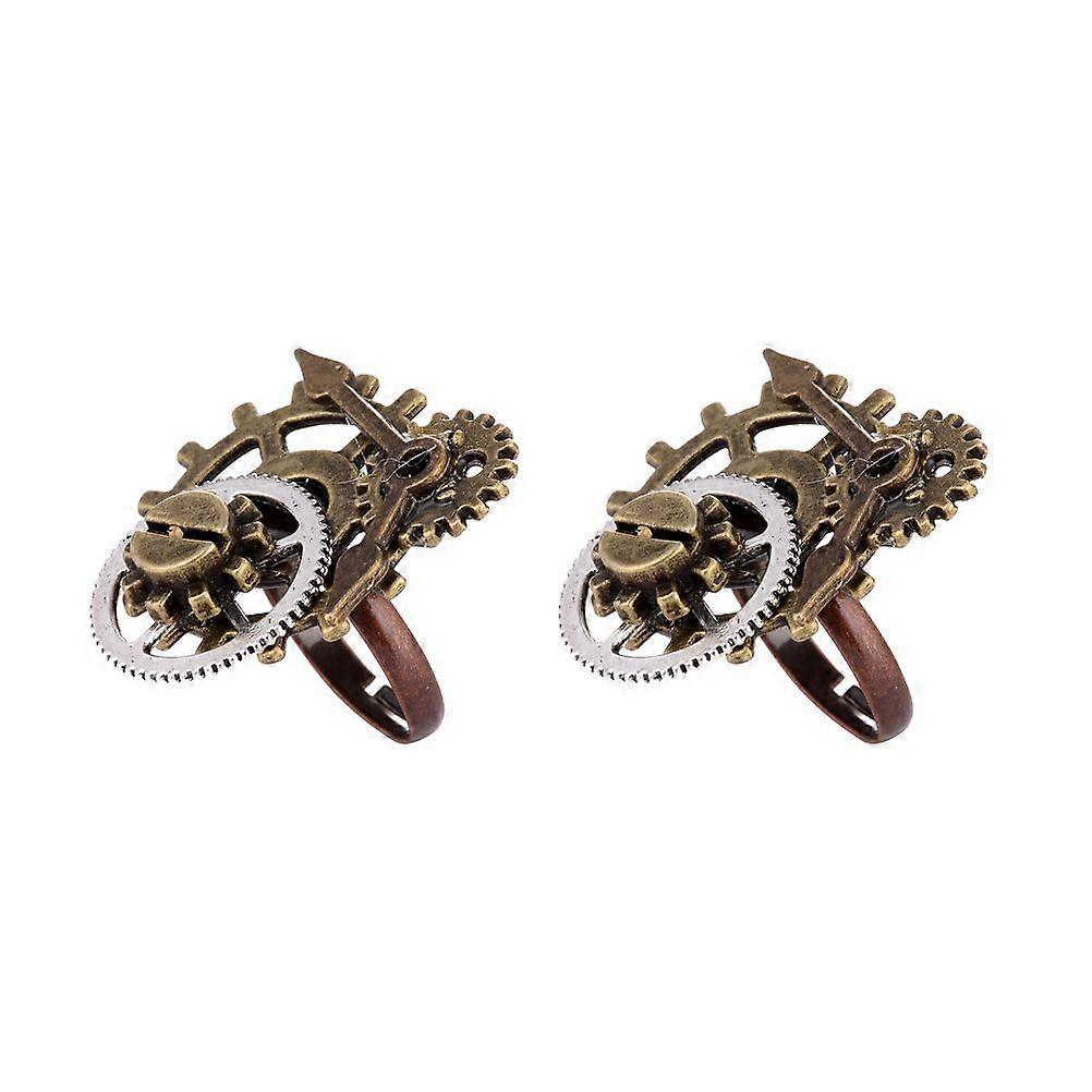 2PCS Steam Punk Ring Stylish Delicate Alloy Jewelry Creative Clock Gear Finger Ring for Men Women Decoration