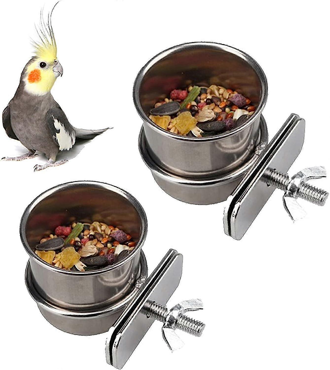 2pcs Stainless Steel Bird Hanging Bowl Bird Feeding Bowl With Clamp Holder For Parrot Parrot Lovebird 2pcs (4.4cm/5.5cm)