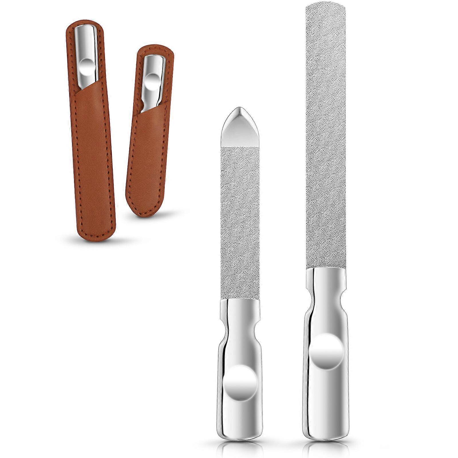 2Pcs Stainless Steel Nail File Double Sided Nail File Manicure Pedicure Tools with Leather Case for Men Women