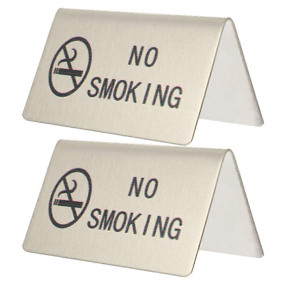 2pcs Stainless Steel No Smoking Sign Stainless No Smoking Signs For Business Table Top Sign Stainless Steel Convenient No Smoking Sign