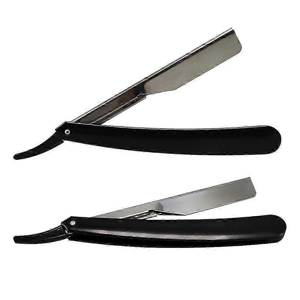 2pcs Straight Shaving Razor Razors Folding Shaving Razor Manual Beard Shaver Barber Shaver Tool (Black)
