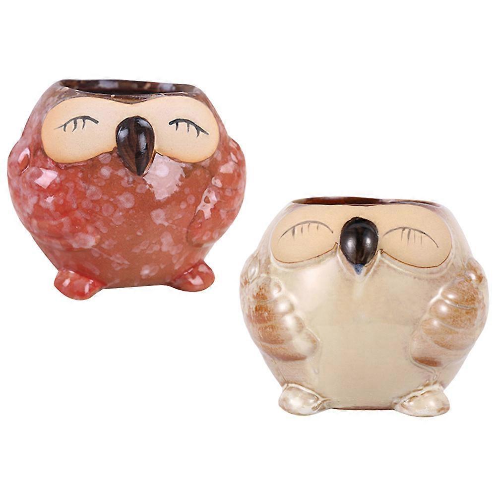 2pcs Ceramic Owl Flower Pot Red White Cartoon Succulent Planter Decorative Plant Container for Home Balcony Office Garden