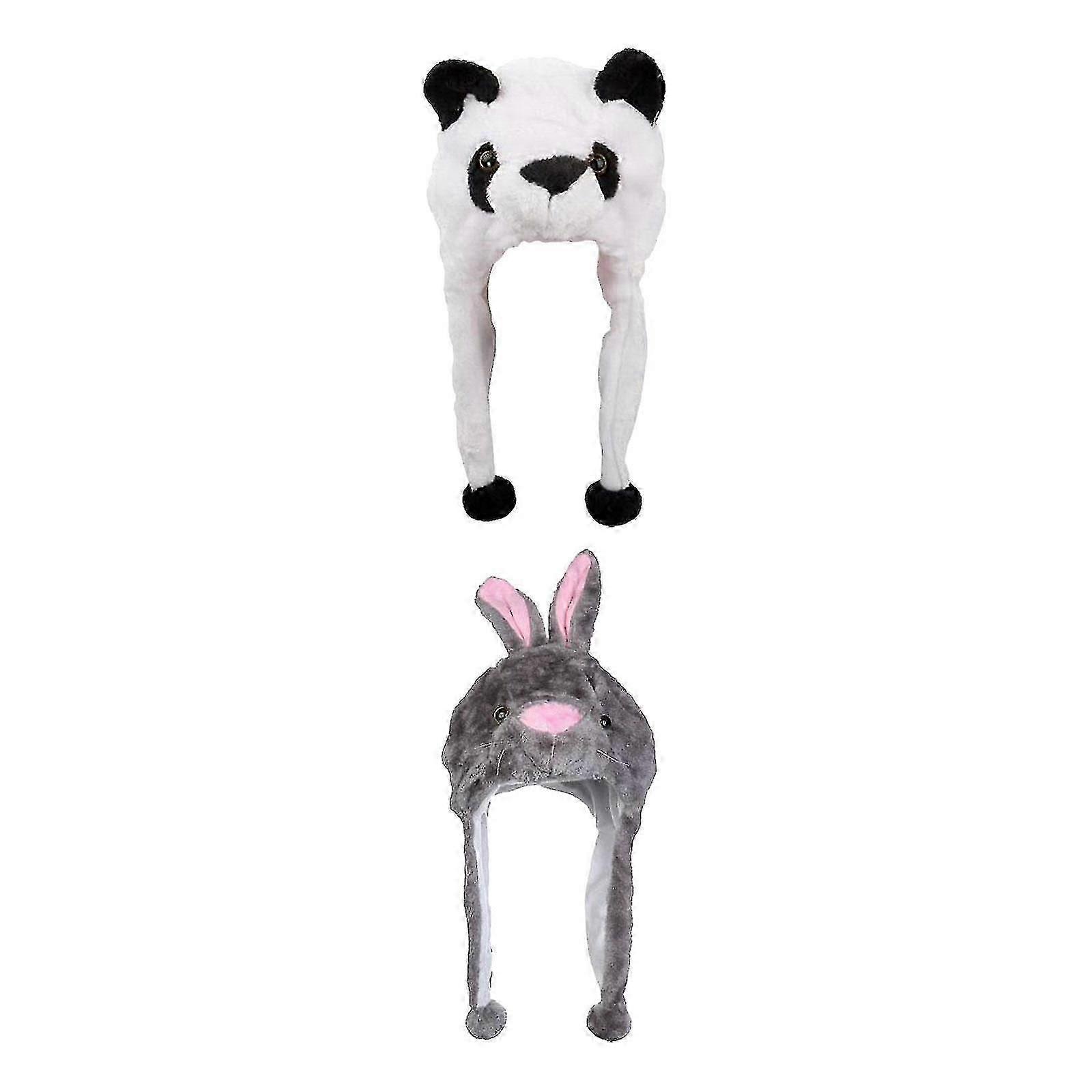 2pcs Soft Animal Plush Hat Costume Fancy Dress Cosplay Gray Rabbit Panda