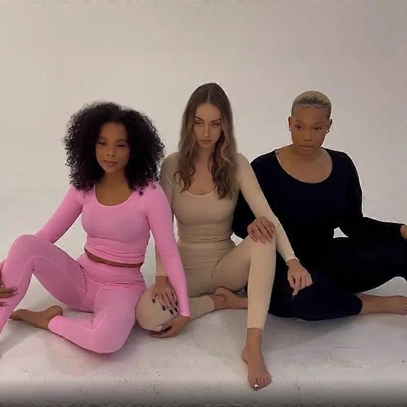 2pcs Solid Color Yoga Workout Set Long Sleeve Round Neck Top & High Stretch Running Sports Leggings Suit Women's Activewear