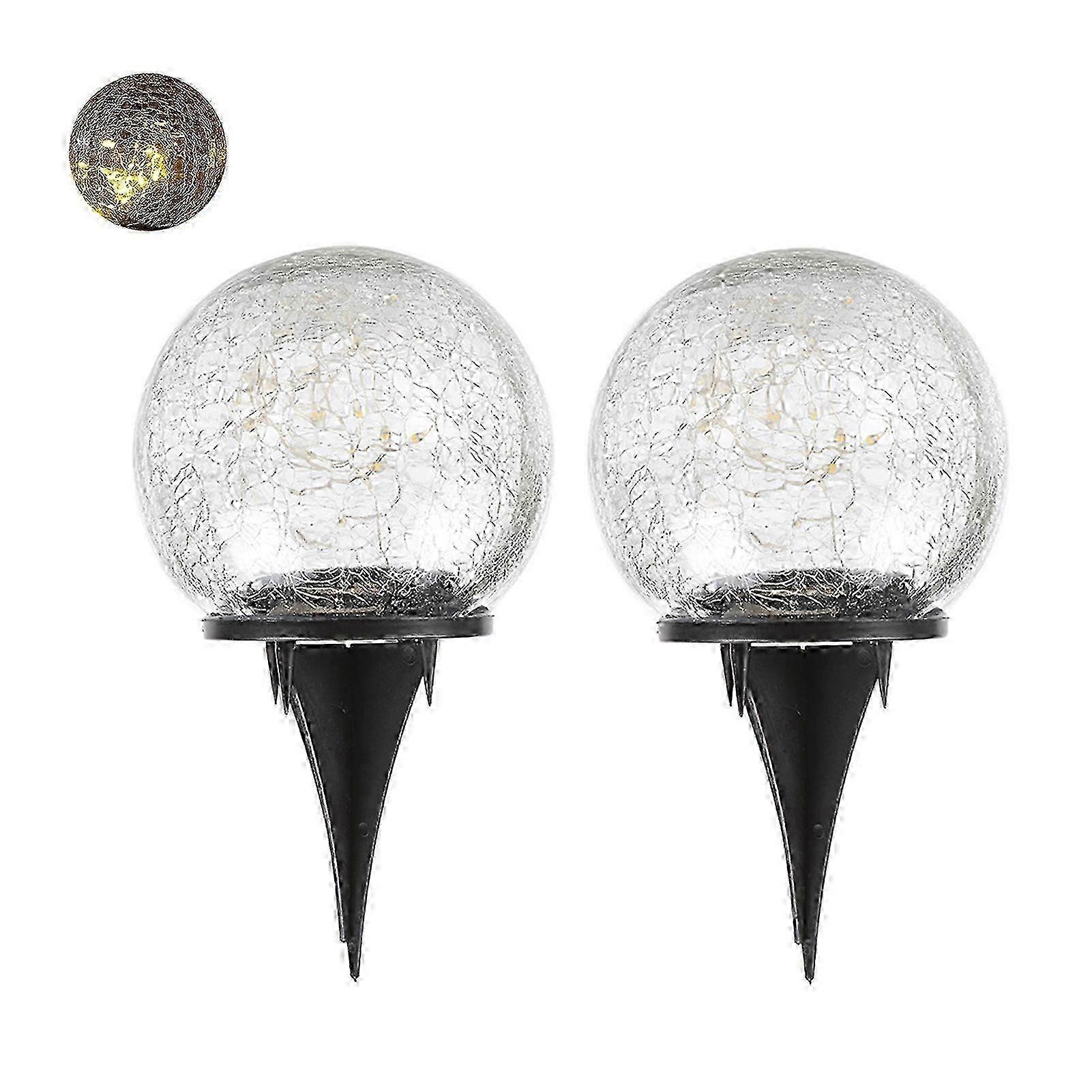2pcs Solar Globe Light Outdoor Ip65 Waterproof Garden Lamp Auto Charging Wireless Cracked Glass Ball Lawn Lamp