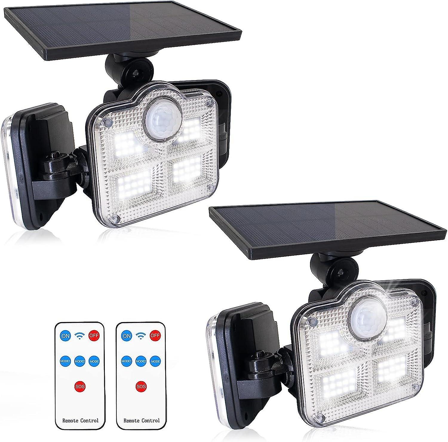 2PCS Solar Lights Outdoor Wall Lights Motion Sensor Solar Powered 3 Heads 122 LEDs IP65 Waterproof