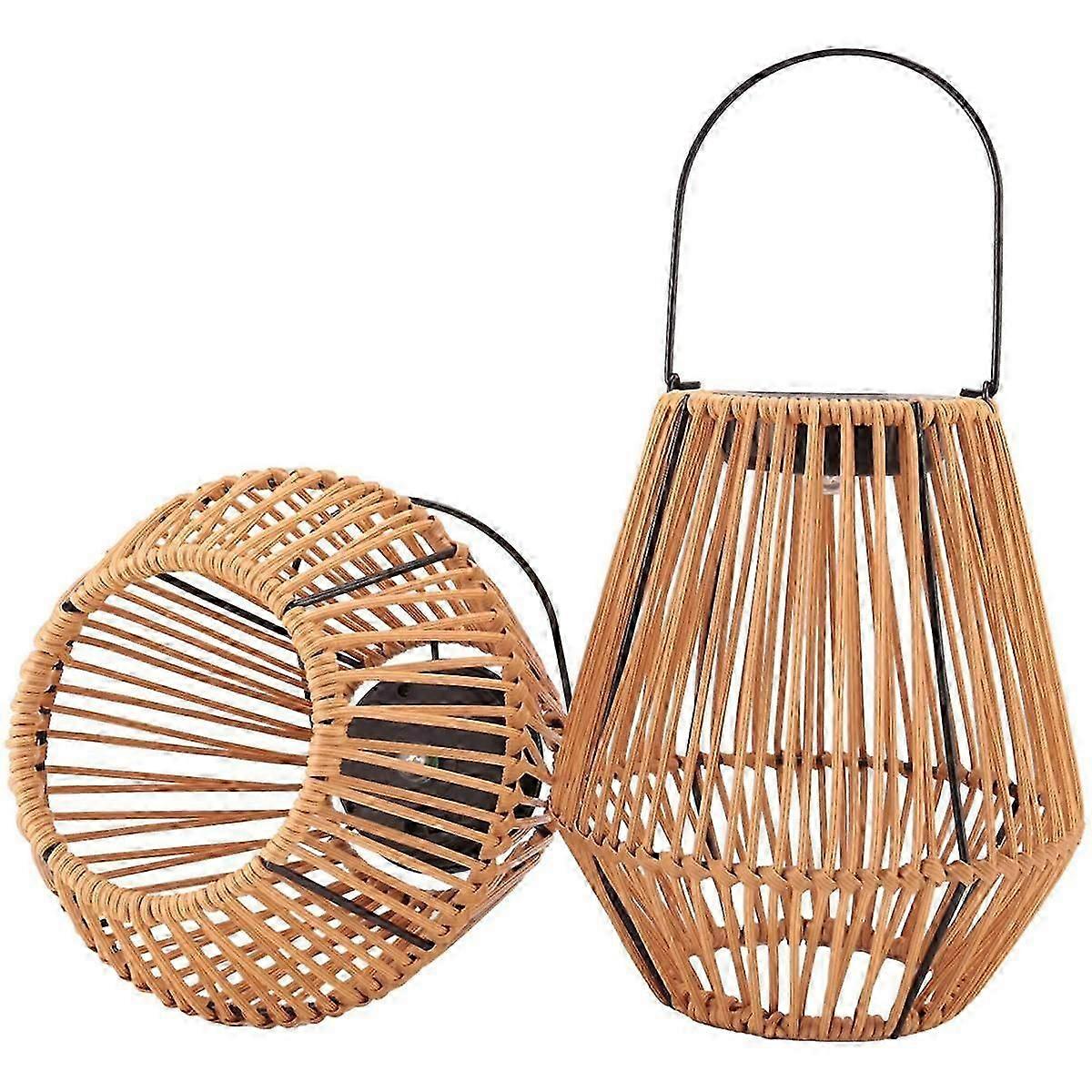 [Decorative Solar Rattan Lantern] Featuring plastic rattan with sturdy metal hooks and internal bulb, our solar lanterns deliver warm lighting that enhances the ambiance of your outdoors. Designed primarily for decorative purposes and not meant for full-scale illumination. [Efficient Solar Power] Our outdoor solar lantern comes with a built-in sensor and solar panel that automatically powers on at sunset and offs at sunrise. Through the day, the solar panel harnesses sunlight into energy, lighting up your yard without the need for wired installations. [Weather Resistant & ] This solar lantern is specifically designed to be yet . With an IP65 waterproof rating, it withstands most weather conditions, offering extended durability. Note: Keep away from fire or high temperatures for safety. [Versatile & Customizable] Solar lights that as decorative elements can be placed on tables, lawns, gardens, or hung on porches, patios, trees, pathways. You can even replace the solar panel with candles or other items, transforming it into a gorgeous candlestick. Colour:As Shown Material:PE+iron Package Contents: 2 * Solar Light Only the above package content, other products are not included. Note: Light reflection and different displays may cause the color of the item in the picture a little different from the real thing. The measurement allowed error is +/- 1-3cm.