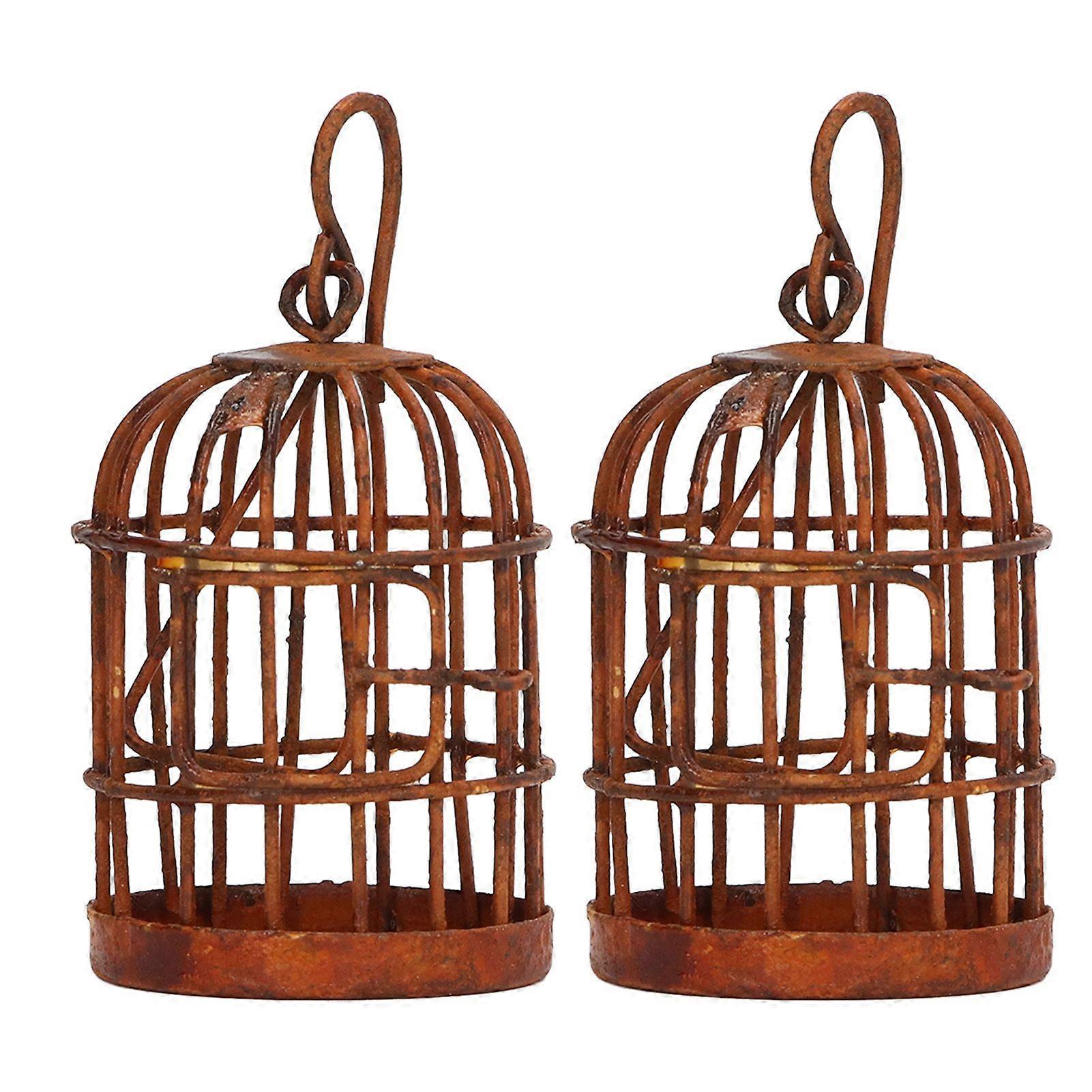 2pcs Dollhouse Iron Birdcage Rusty Simulation 1:12 Scale Metal Bird Cage for Dollhouse Accessories