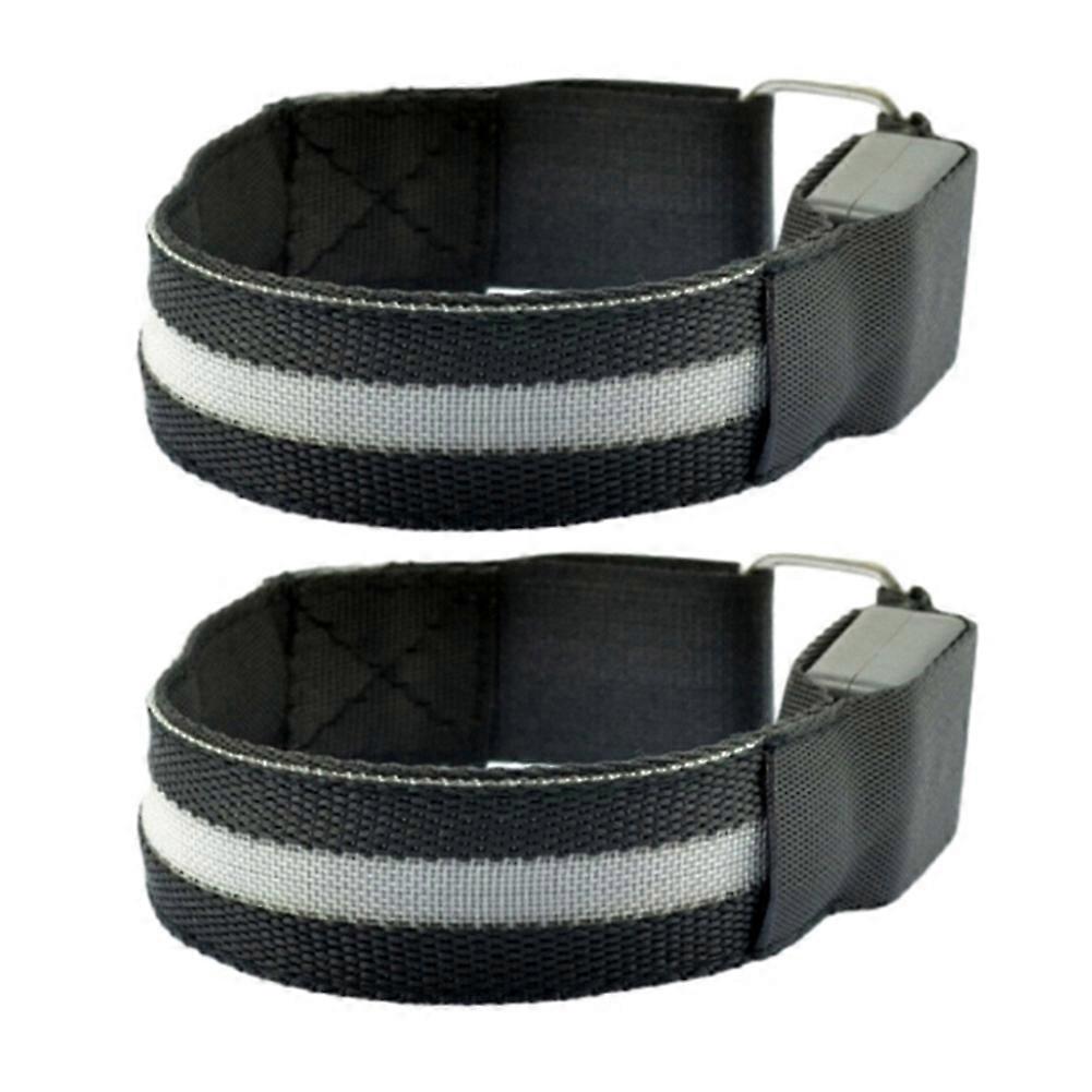 2pcs Night Running Arm Line LED Outdoor Sports USB Rechargeable Wristband Safety Leg Warning Wristband Black