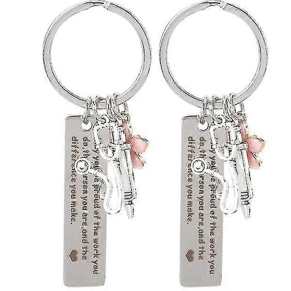 2pcs Nurse Keychain Metal Syringe Stethoscope Key Ring Nurse Bag Pendants