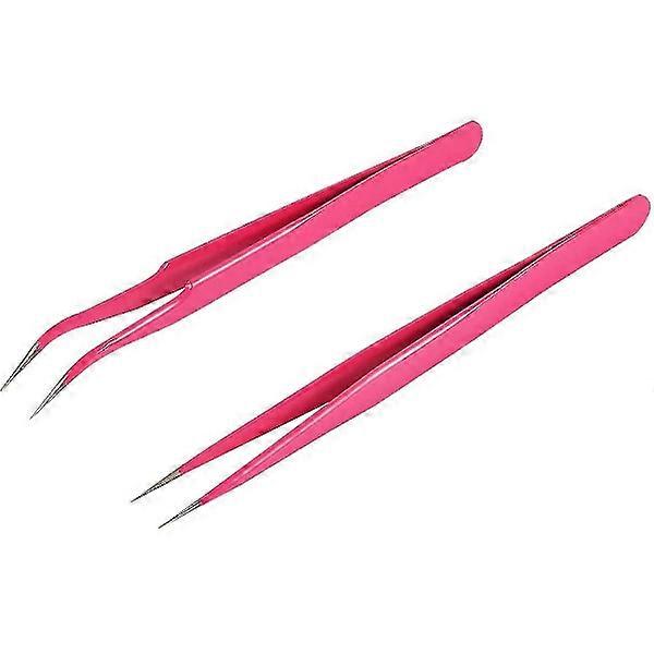 2pcs Nail Art Tweezers Straight Curved False Eyelash Pointed