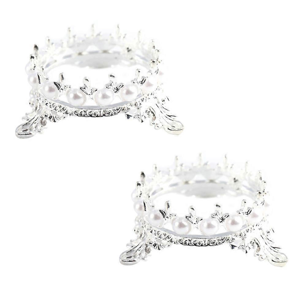 2PCS Nail Art Pen Rack Vintage Crown Manicure Pen Holder Pearl Inlay Manicure Pen Rack Gold-plated Color Painting Pen Holder for Salon Home Use Silver