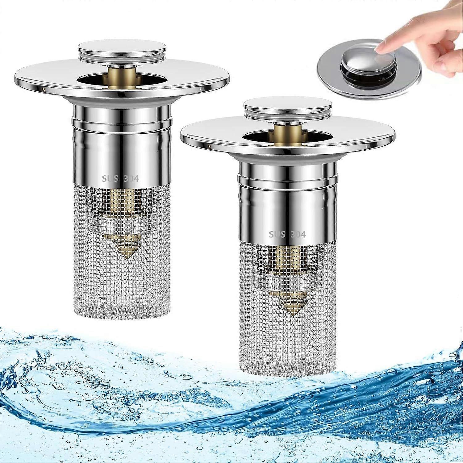 2pcs Bathroom Sink Stopper Hair Catcher,Pop Up Sink Drain Filter with Removable